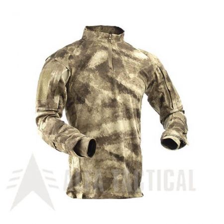 Bojové tričko je vybaveno polovičním předním zipem, integrovaná duální manžeta s otvorem na palce a suchým zipem, dvouvrstvé kapsy na rukávech a několika dvouvrstvých elastických ramenních kapes.