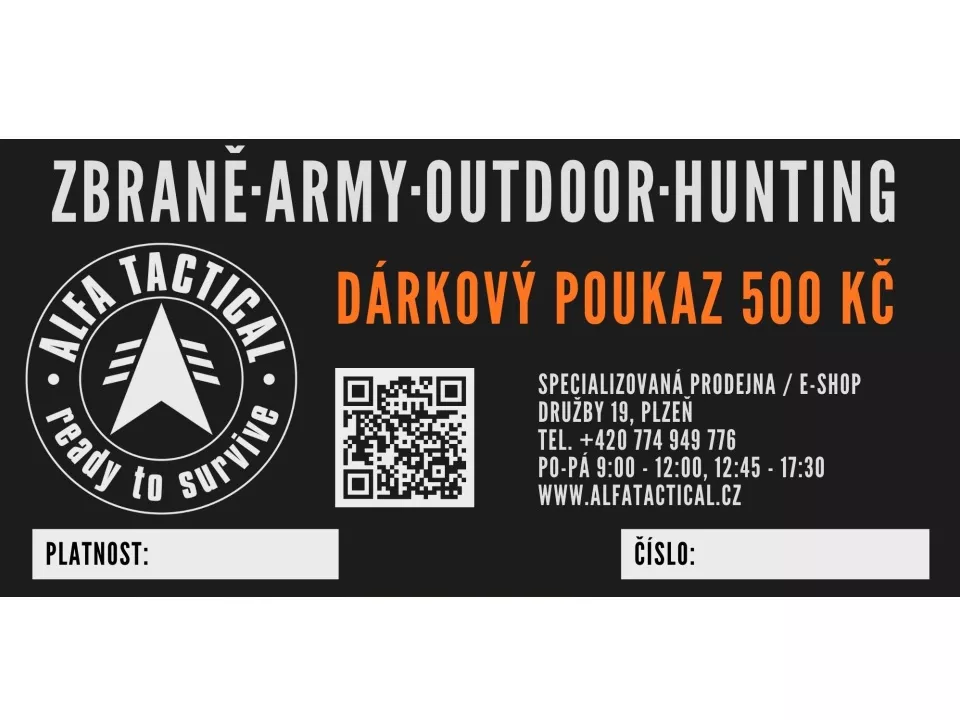 Popis k výrobku: ALFA TACTICAL DÁRKOVÝ CERTIFIKÁT ALFATACTICAL 500,-CZK