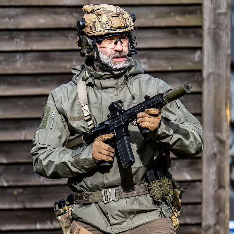 CONGER tactical jacket made of a soft , 3-ply Strom-Tex System fabric. The material filters the air, is resistant to rain and wind . The two-way zipper is covered with a hook and loop flap. The jacket has 4 outside pockets and one inside pocket. Adjustable bottom of the jacket and cuffs . The hood can be attached to the flange using the slider. Hook and Loops panels are placed on the sleeves and chest. Thanks to them, you can attach emblems. Armpit ventilation holes improve airflow.