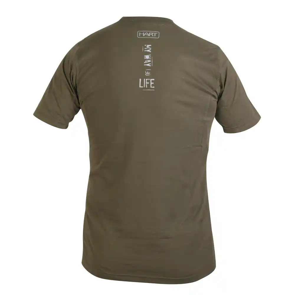 Značkové tričko od HART je vyrobeno z bavlněné směsi a má síťované vsadky pod pažemi pro lepší ventilaci. Lovecký potisk na přední straně.