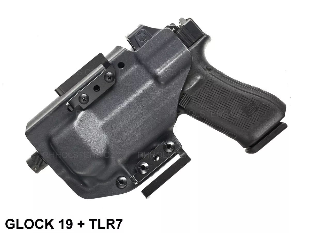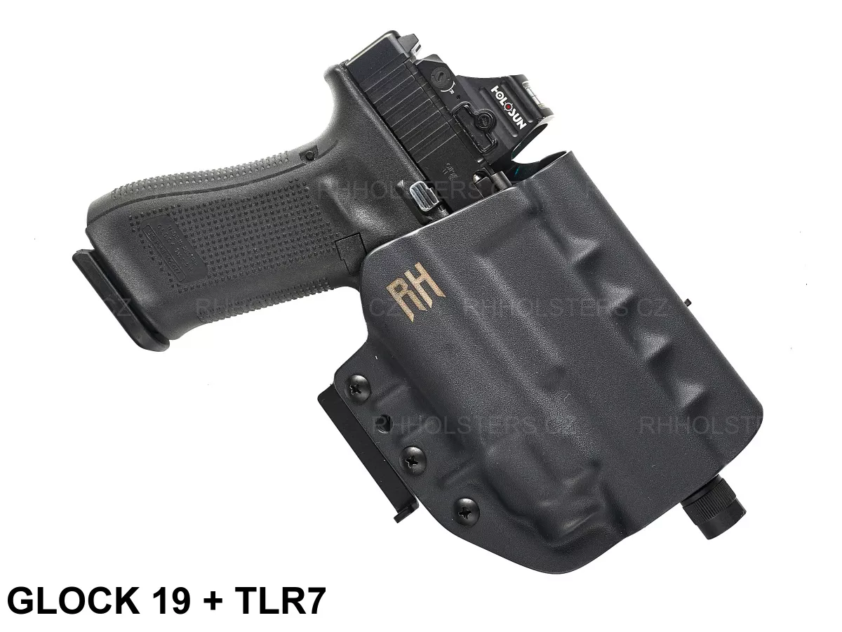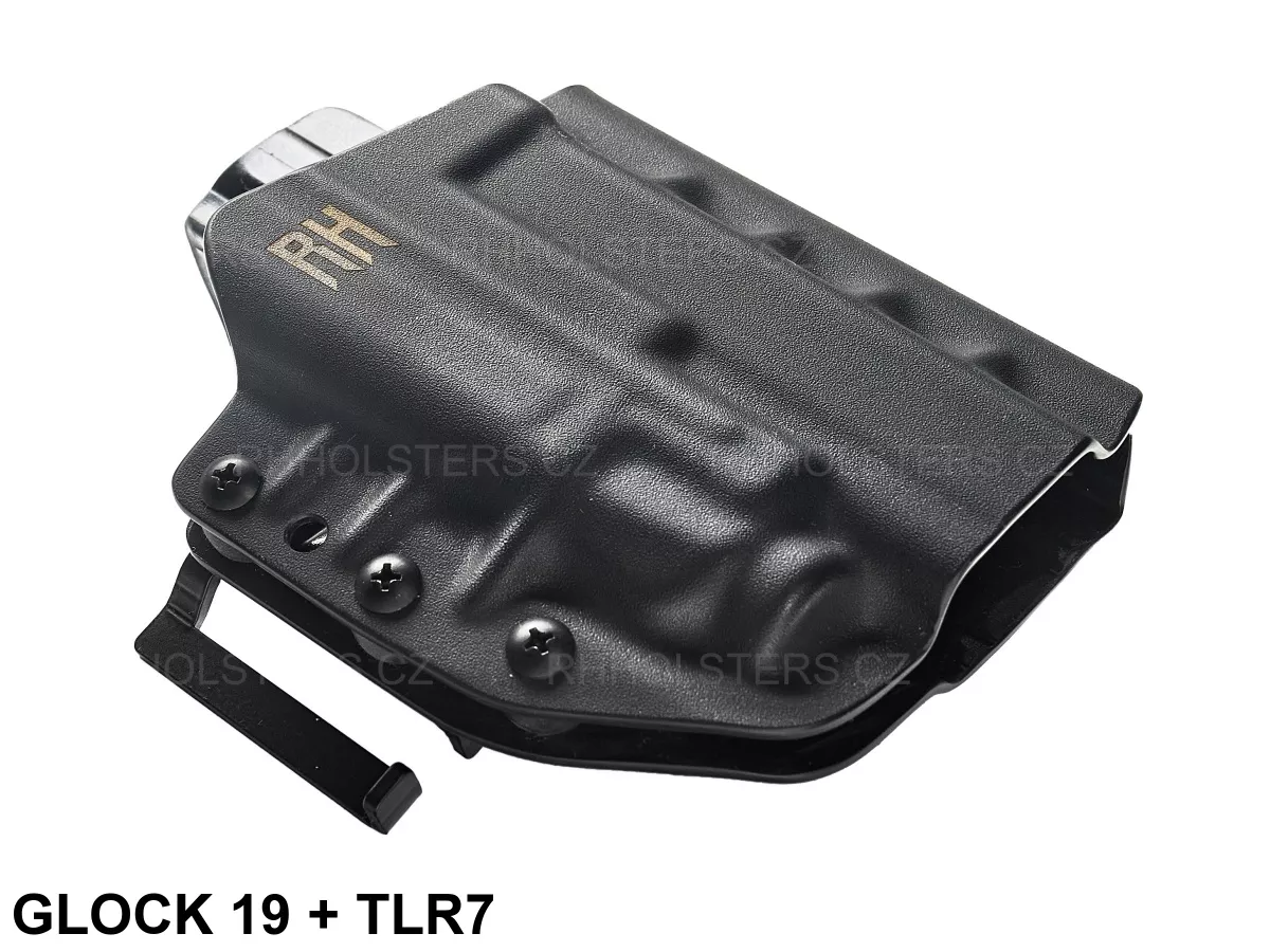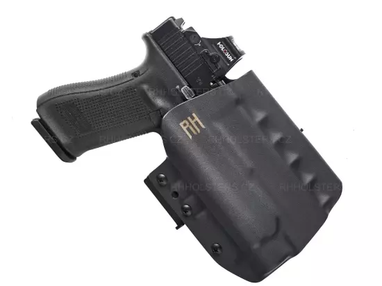 Popis k výrobku: RH Holsters OWB kydexové pouzdro se svítilnou FROGY, Speedloops 45mm, černé, pravé