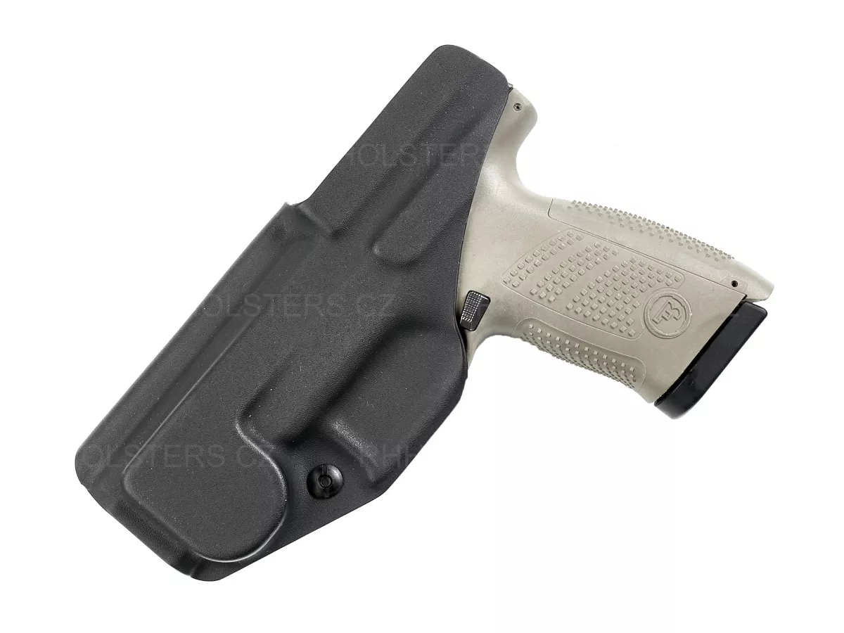 Otevřená konstrukce pouzdra zajišťuje pohodlné čištění a nabízí možnost nošení zbraně s prodlouženou hlavní/závitem, kompenzátorem atp. Navíc jsou všechna pouzdra vhodná k použití s kolimátorem. Je vyrobeno z 2 mm širokého pevného kydexu.