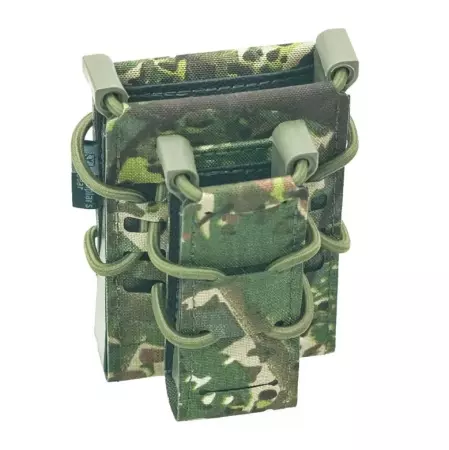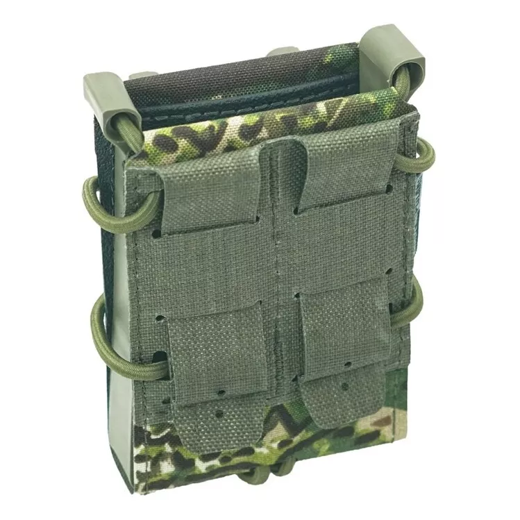 Univerzální samosvorná sumka s laserem řezaným MOLLE systémem. Tvar sumky udržuje postranní polymerový rám. Díky důmyslnému systému svoru pojme sumka většinu puškových zásobníků včetně zásobníků pro AR, AK i SA58. Pouzdro zajišťuje zásobník samosvorem, takže není potřeba žádná další pojistka, jako krycí chlopeň, nebo zajišťující šňůrka. Laserem řezaná Molle vazba poskytuje nižší profil sumky a elegantní vzhled.