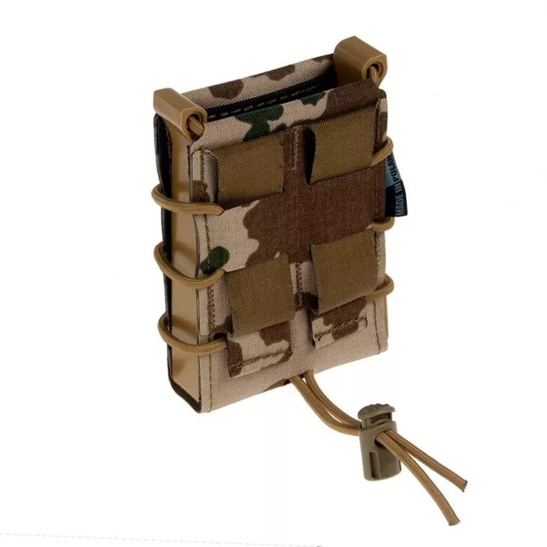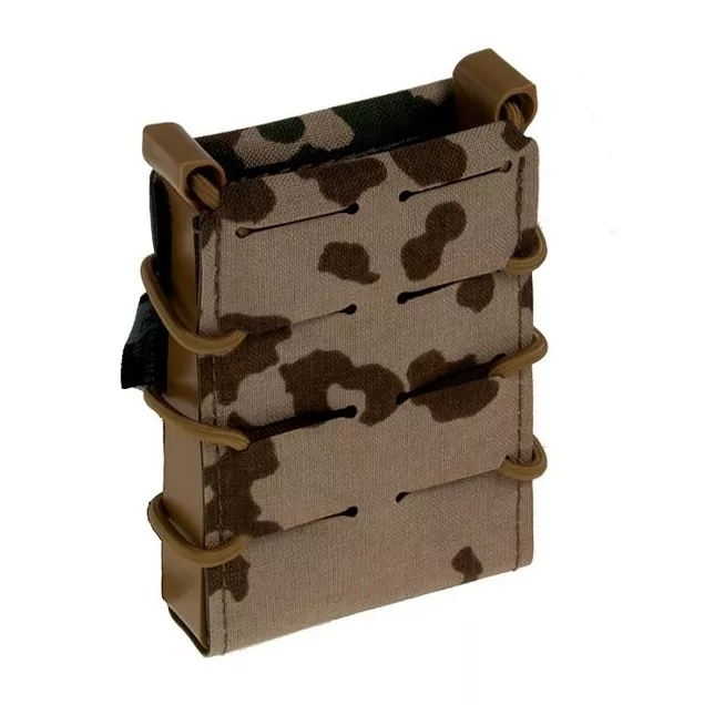 Univerzální samosvorná sumka s laserem řezaným MOLLE systémem. Tvar sumky udržuje postranní polymerový rám. Díky důmyslnému systému svoru pojme sumka většinu puškových zásobníků včetně zásobníků pro AR, AK i SA58. Pouzdro zajišťuje zásobník samosvorem, takže není potřeba žádná další pojistka, jako krycí chlopeň, nebo zajišťující šňůrka. Laserem řezaná Molle vazba poskytuje nižší profil sumky a elegantní vzhled.