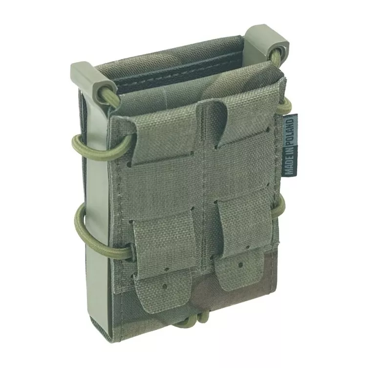 Univerzální samosvorná sumka s laserem řezaným MOLLE systémem. Tvar sumky udržuje postranní polymerový rám. Díky důmyslnému systému svoru pojme sumka většinu puškových zásobníků včetně zásobníků pro AR, AK i SA58. Pouzdro zajišťuje zásobník samosvorem, takže není potřeba žádná další pojistka, jako krycí chlopeň, nebo zajišťující šňůrka. Laserem řezaná Molle vazba poskytuje nižší profil sumky a elegantní vzhled.