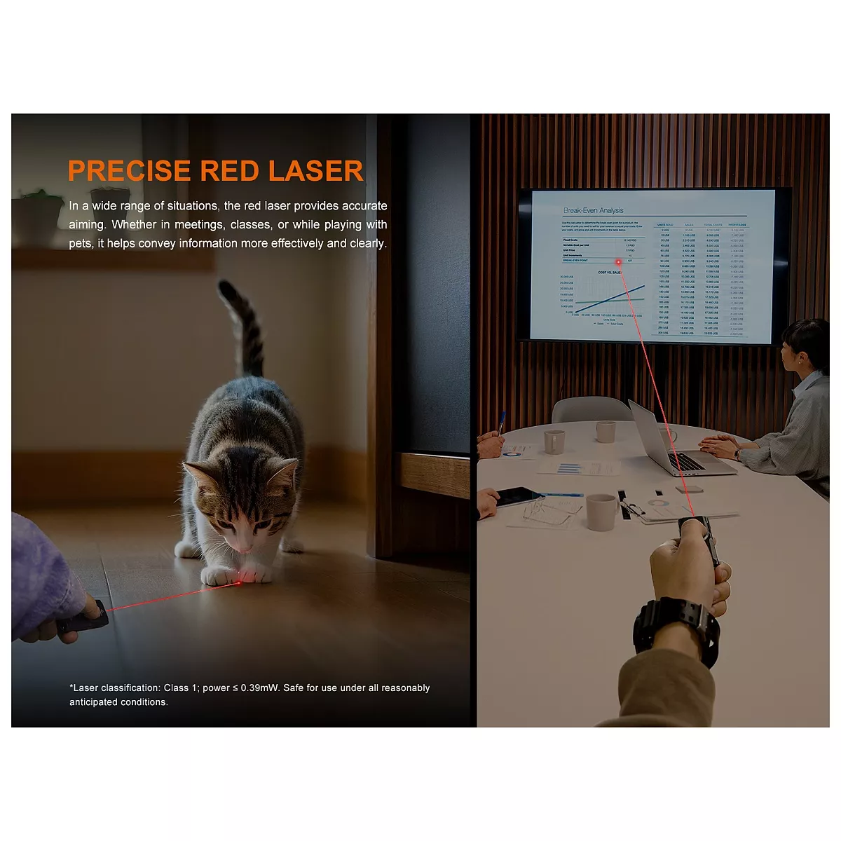 Červený laser se zapíná a vypíná podržením červeného tlačítka na boku svítilny zhruba 0,5 vteřiny.