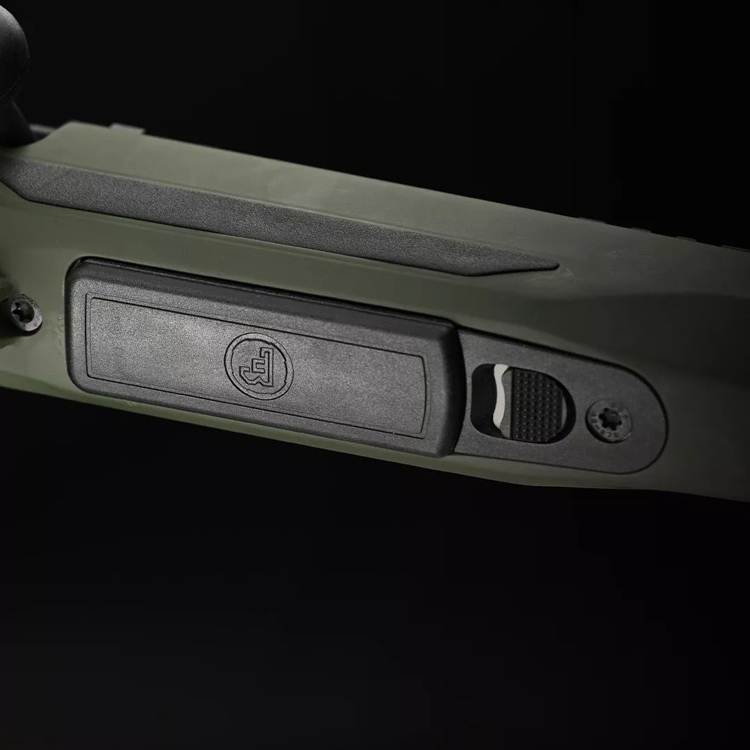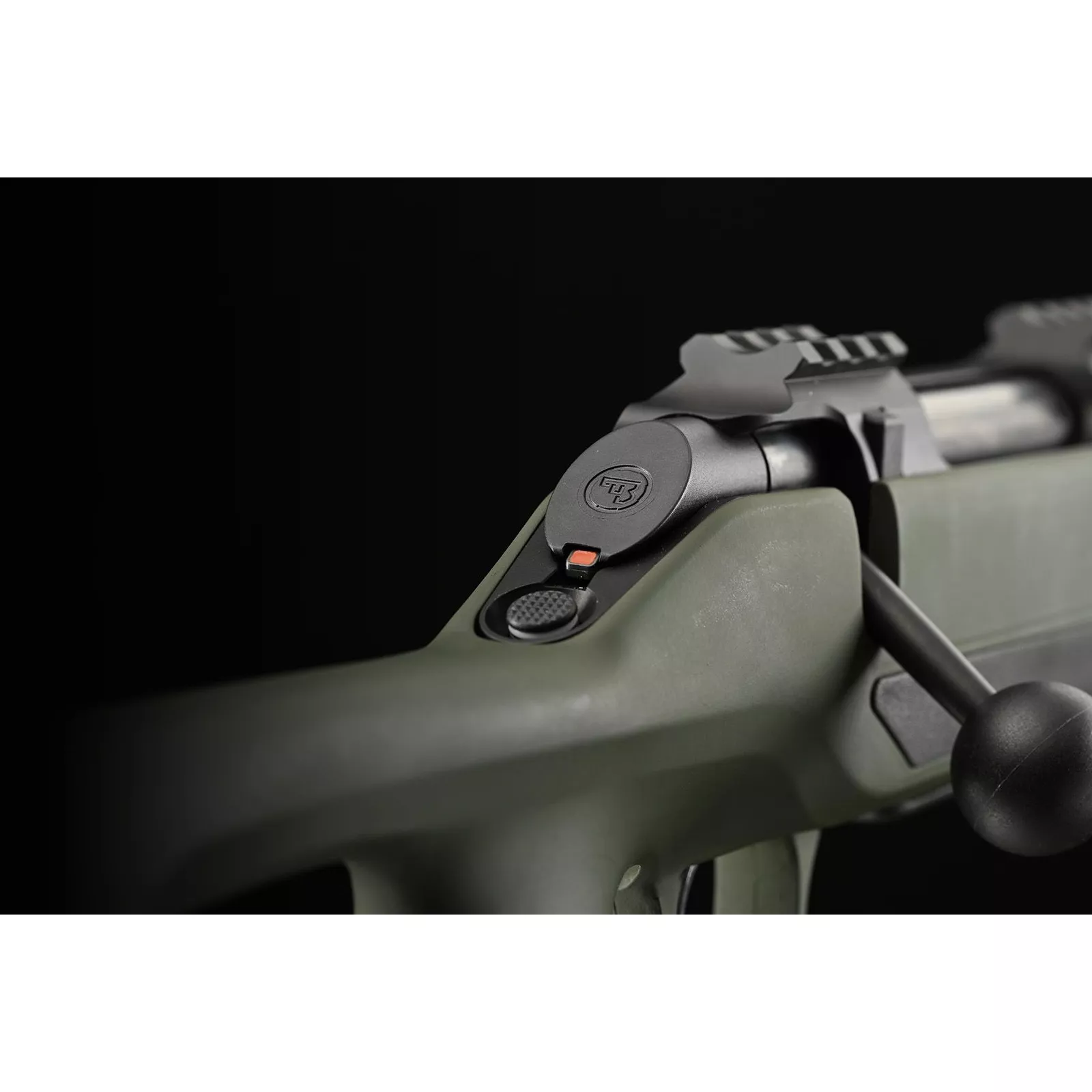 Patentově chráněná, snadno dostupná a naprosto spolehlivá vertikální manuální pojistka na krku pažby se odjišťuje stlačením dolů a umožňuje naprosto tiché ovládání. Lze ji snadno ovládat i v rukavicích.
