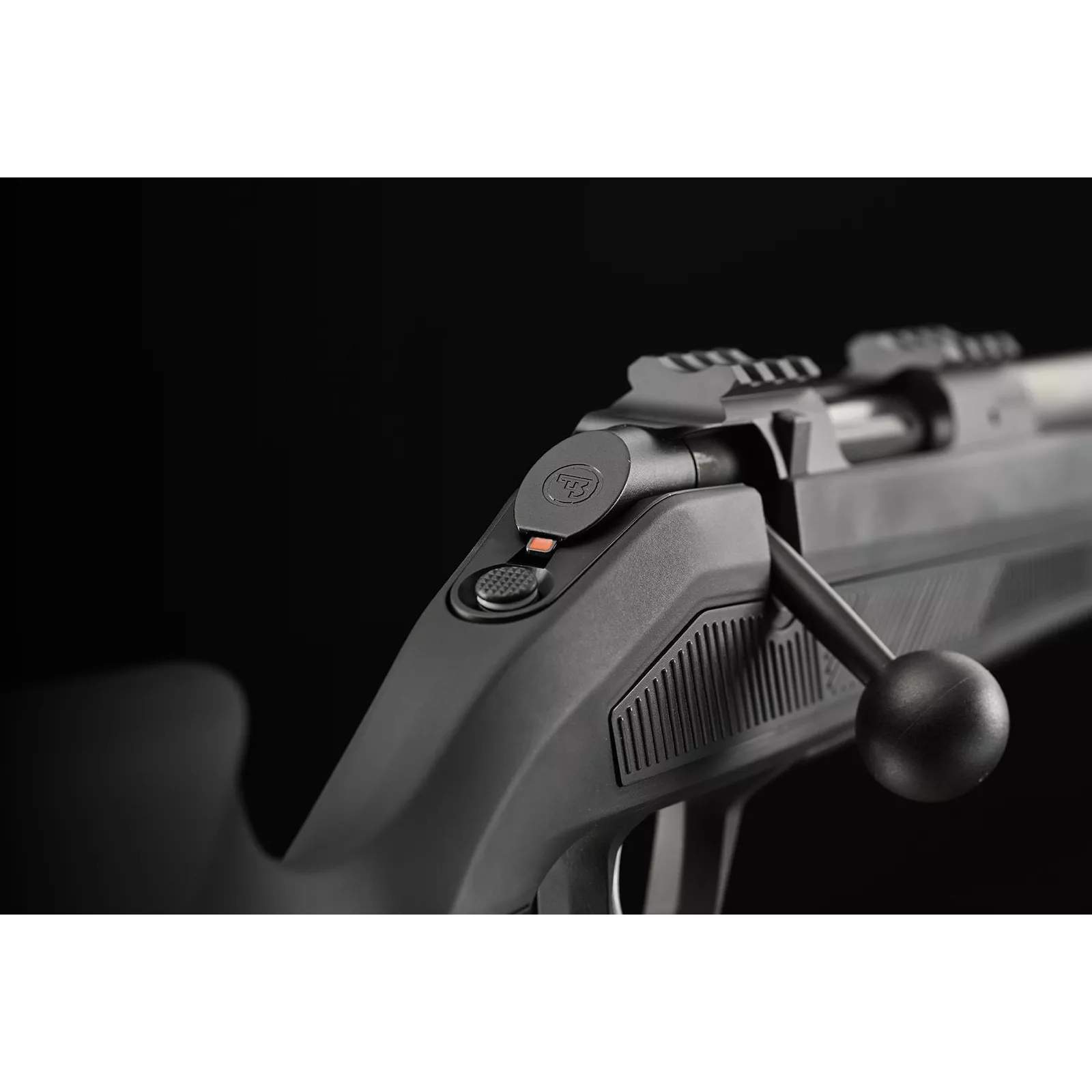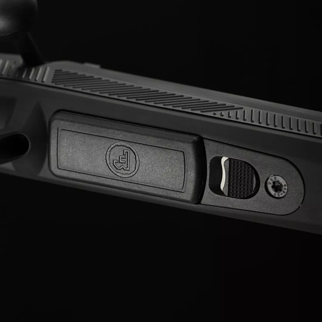 Patentově chráněná, snadno dostupná a naprosto spolehlivá vertikální manuální pojistka na krku pažby se odjišťuje stlačením dolů a umožňuje naprosto tiché ovládání. Lze ji snadno ovládat i v rukavicích.