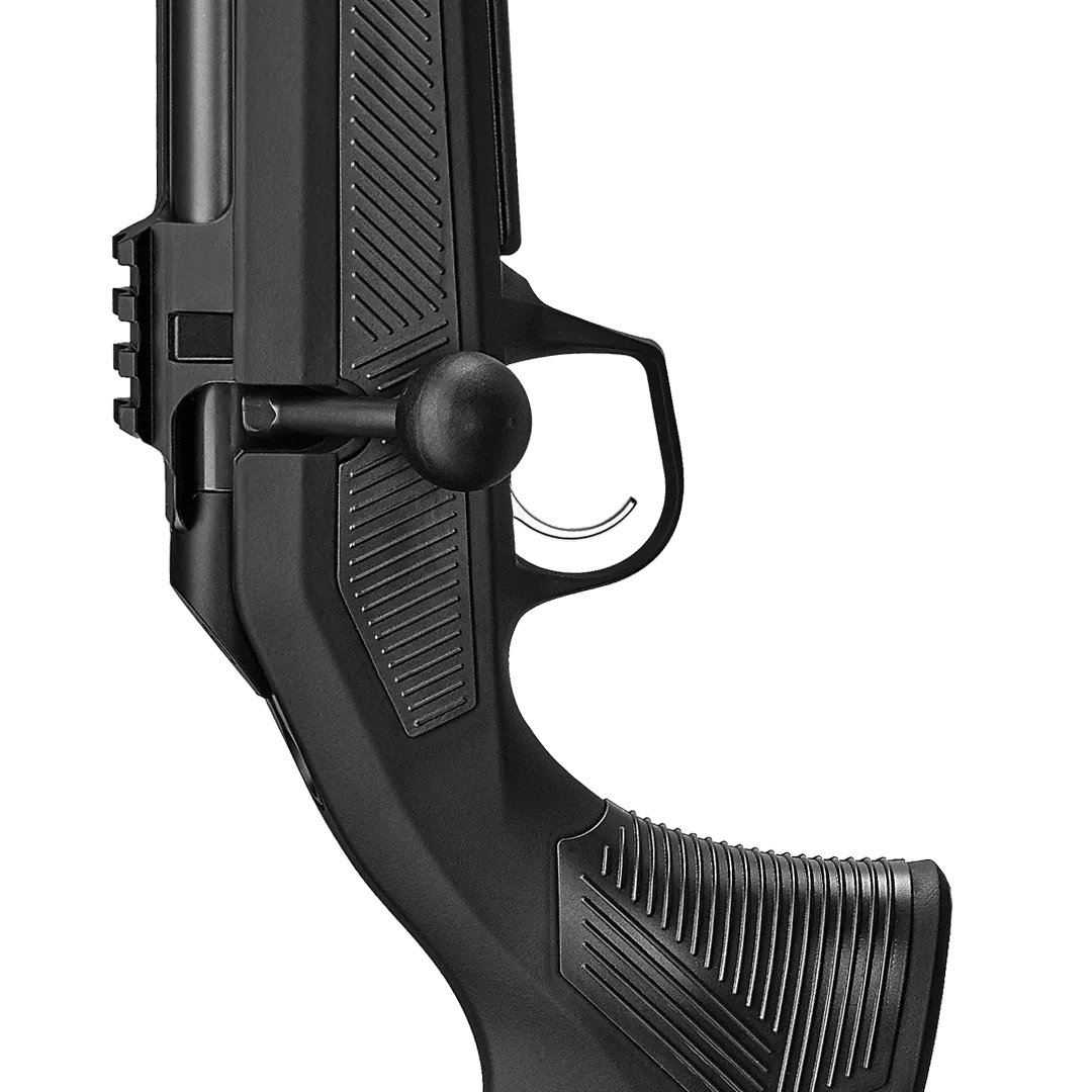 Patentově chráněná, snadno dostupná a naprosto spolehlivá vertikální manuální pojistka na krku pažby se odjišťuje stlačením dolů a umožňuje naprosto tiché ovládání. Lze ji snadno ovládat i v rukavicích.