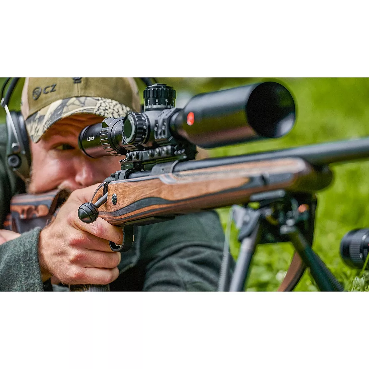 Masivní laminovaná pažba originálního designu CZ je vybavena hlavištěm s lícnicí, jejíž výšku si můžete nastavit bez použití nástrojů.