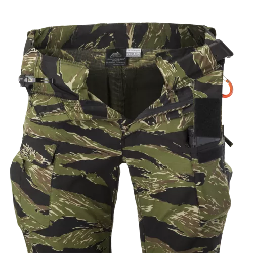 Čím jsou vojenské kalhoty Helikon Urban Tactical Pants® tak výjimečné? Rozložení střihu a kapes použité v těchto taktických kalhotách udržuje dostatečně civilní vzhled při zachování plné funkčnosti bojových kalhot, schopných podporovat taktické náležitosti a zároveň nekolidovat s lidskou anatomií. Elastický pásek zavřený na suchý zip umožňuje snadné nastavení. Široká poutka na opasek umožňují šířku pásu až 50 mm, včetně všech taktických pásů HTX: EDC, UTL® nebo Cobra®. Použitý střih, klasický pro modré džíny, snížil tendenci sjíždět během používání.