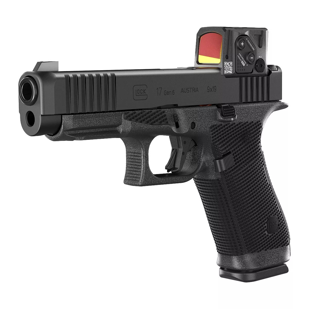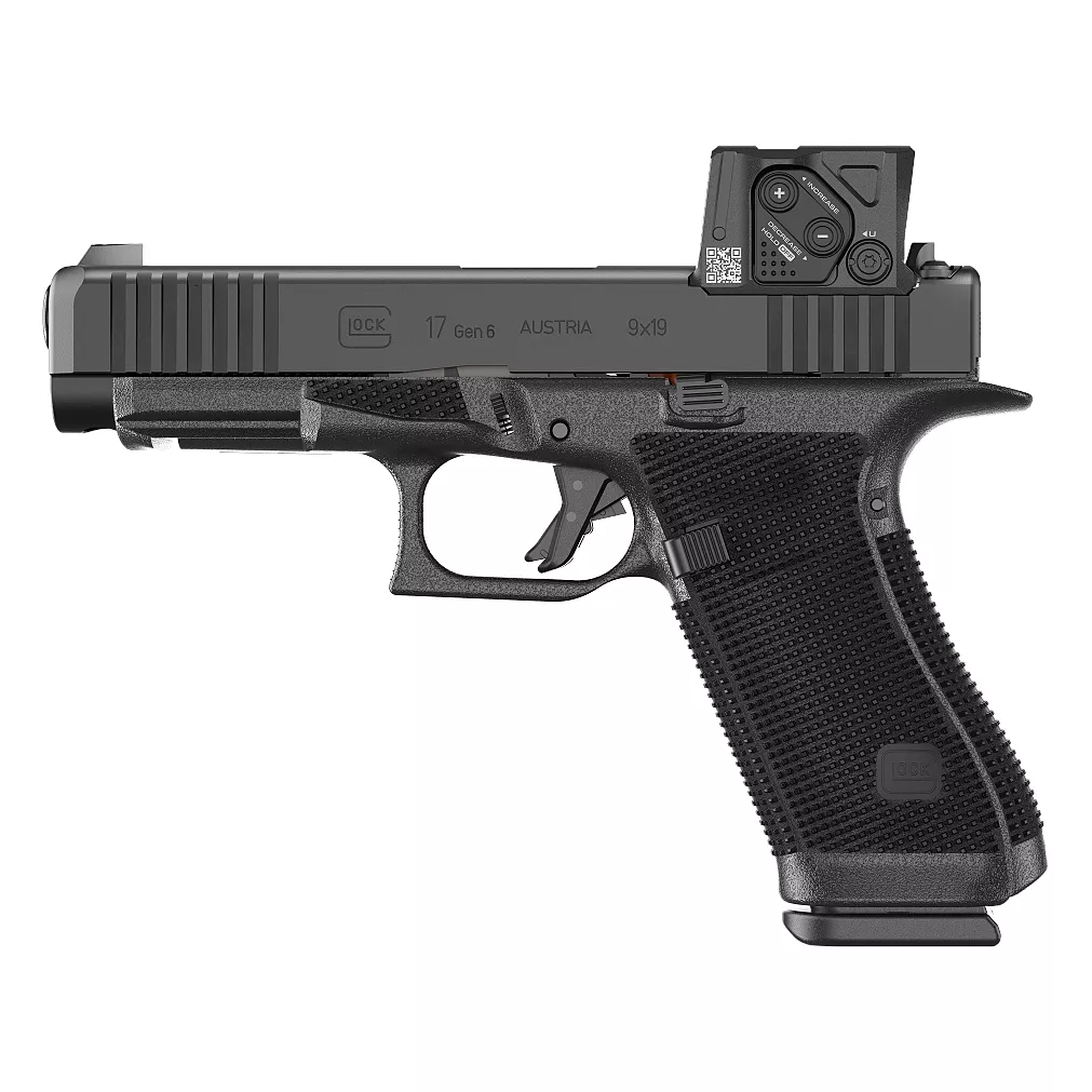 Pistole GLOCK 17 Gen6 je pistole plné velikosti, která nabízí vylepšenou ergonomii pro větší použitelnost a pohodlí, nyní s unikátním systémem optiky. G17 má standardní rám s bočnicí po celé délce a zásobník na 17 ran
