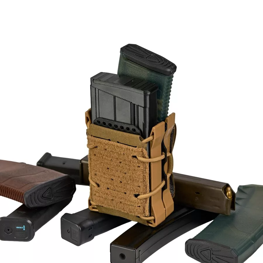 Zdvojnásobte svou palebnou sílu, aniž byste zabrali více místa. Bezpečně pojme dva samostatné zásobníky v jednom pouzdře, což umožňuje použití smíšených nábojů – použijte ráže .308 a .223 nebo 5.56 se dvěma 9mm náboji.