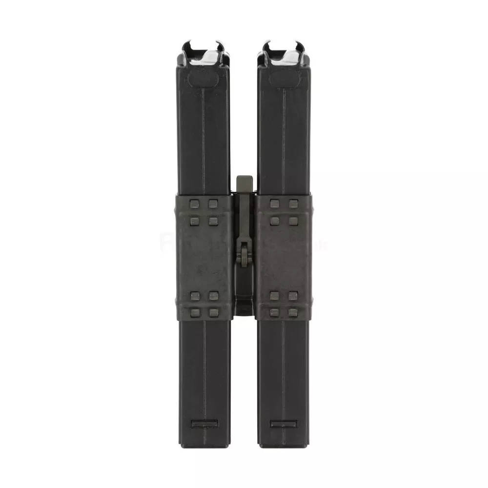 Toto je originální spojka zásobníků z výroby Heckler & Koch pro spojení dvou zásobníků MP5 nebo SP5. Je vyrobena výhradně z oceli a její robustní konstrukce umožňuje upevnění zásobníků vedle sebe nebo s mírným posunem.