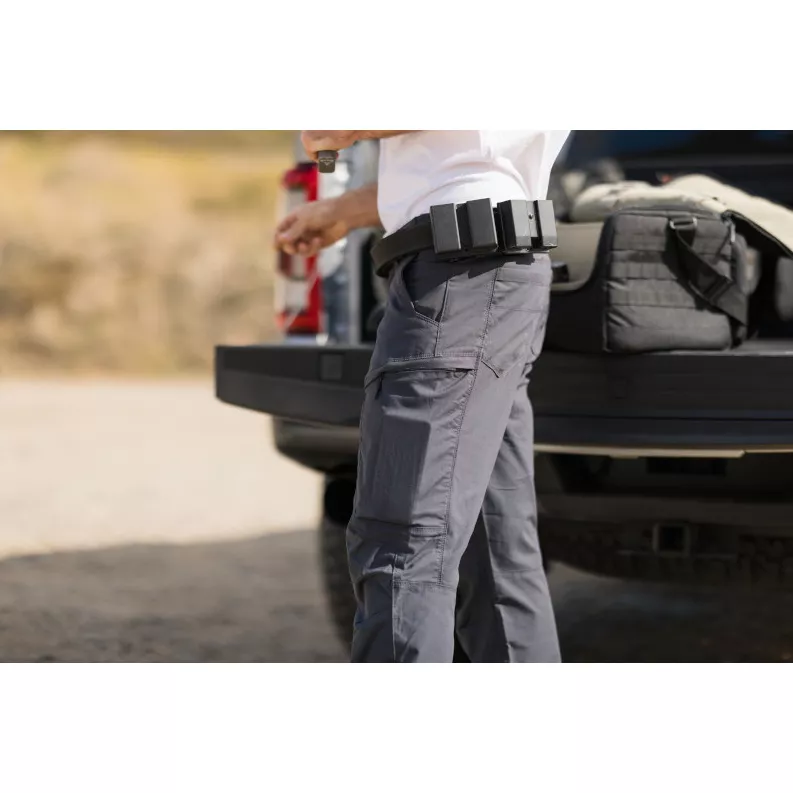 S celkem 10 kapsami, včetně vnitřní pružné manžety, skryté kapsy na klíče od pout, stehenních kapes na zip s vnitřním úložištěm na zásobník a hlubokých, vyztužených hlavních kapes, jsou služební kalhoty 5.11 Apex Pant připraveny k akci. Povrchová úprava Teflon® nabízí odolnost vůči skvrnám a nečistotám, díky čemuž jsou tyto kalhoty ideální pro taktické profesionály, kteří potřebují spolehlivé vybavení, které odolá úskalím jejich pracovního prostředí. Apex Pant jsou k dispozici v běžném střihu, s pohodlným pasem a vyztuženou konstrukcí pro optimální pohyb. Tyto odolné kalhoty mají také vyztuženou oblast klipu na nože na kapsách, tkaný štítek s logem 5.11® na spodní straně nákladní kapsy a výšivku Scope na středovém poutku na opasek vzadu. Zipy YKK® zajišťují bezpečné uzavření a dlouhotrvající výkon.