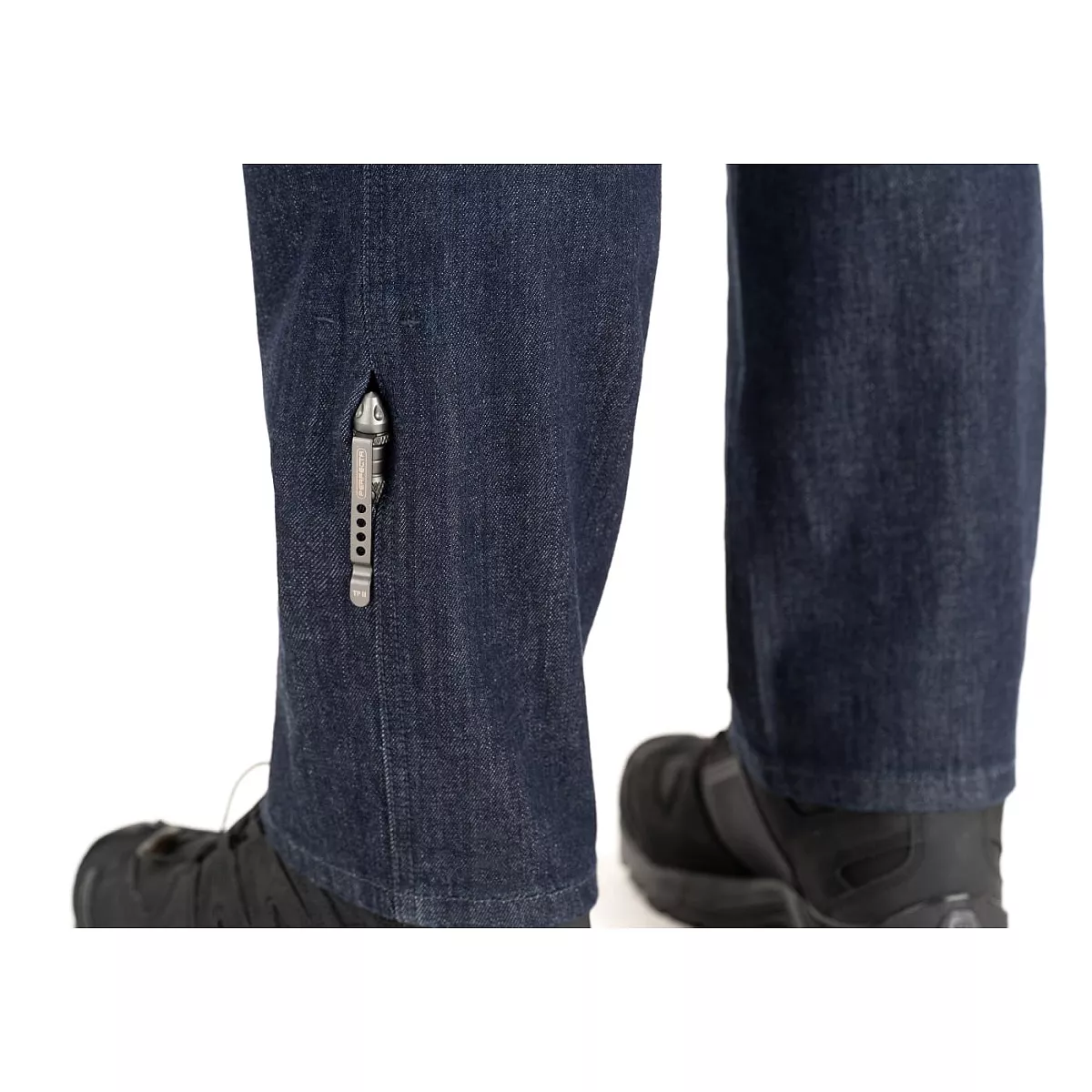 Zesílené dvojité vrstvy v přední kapse umožňuje nošení kapesního nože a široká poutka na opasek umožňují nošení opasku až do šířky 55 mm. Taktické džíny Tactical Jeans Mk.II, určené pro tajné úkoly, cestování, použití na střelnici a EDC, poskytují organizované, bezpečné nošení a odolný výkon – a zároveň si zachovávají nenápadný civilní vzhled.