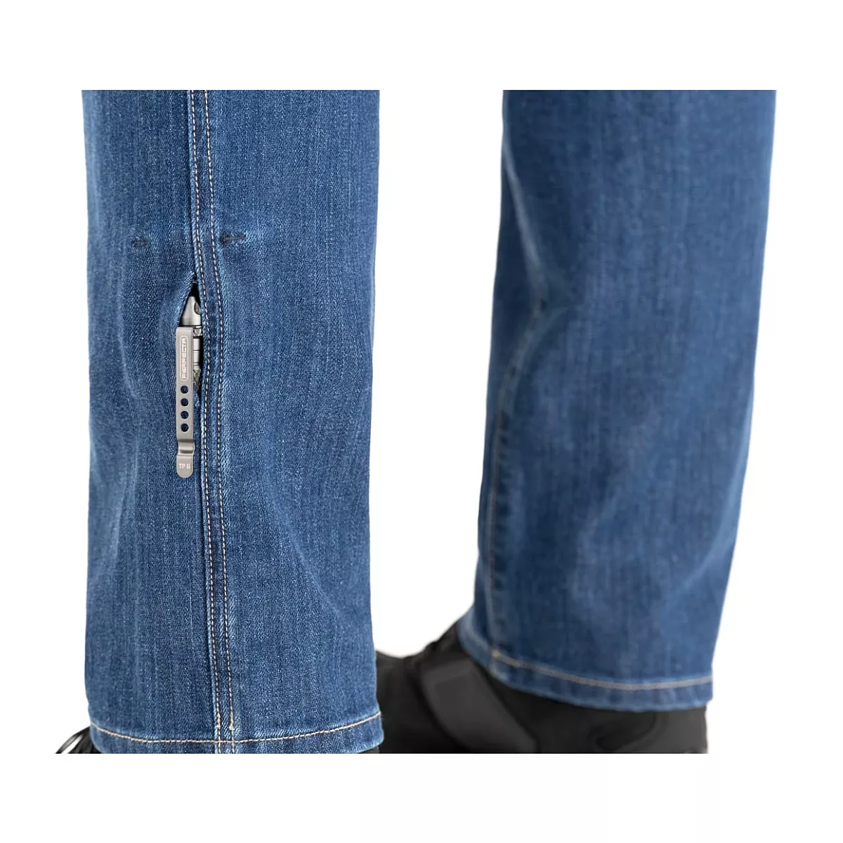 Zesílené dvojité vrstvy v přední kapse umožňuje nošení kapesního nože a široká poutka na opasek umožňují nošení opasku až do šířky 55 mm. Taktické džíny Tactical Jeans Mk.II, určené pro tajné úkoly, cestování, použití na střelnici a EDC, poskytují organizované, bezpečné nošení a odolný výkon – a zároveň si zachovávají nenápadný civilní vzhled.