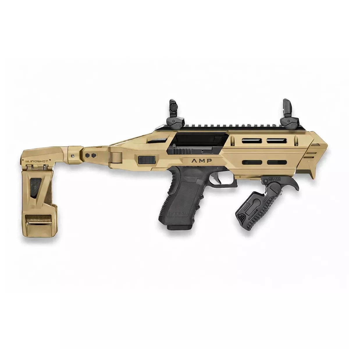 AMP je nejnovější generace konverzních systémů pro pistole. Tato nová modulární konstrukce obsahuje tři vyměnitelné adaptéry. Výměna a kombinace různých adaptérů umožňuje uživateli přizpůsobit AMP různým modelům pistolí.