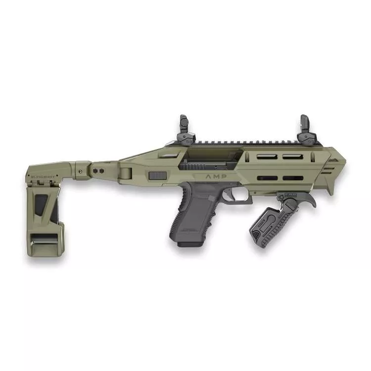 AMP je nejnovější generace konverzních systémů pro pistole. Tato nová modulární konstrukce obsahuje tři vyměnitelné adaptéry. Výměna a kombinace různých adaptérů umožňuje uživateli přizpůsobit AMP různým modelům pistolí.