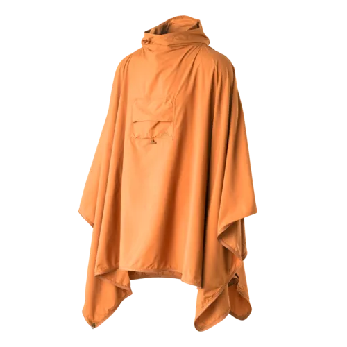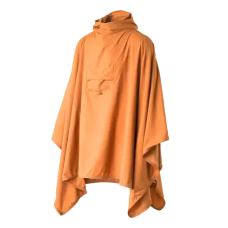 - Po rozložení se z něj stane pončo s kapucí a se zapnutými boky slouží zároveň jako lehká bunda.