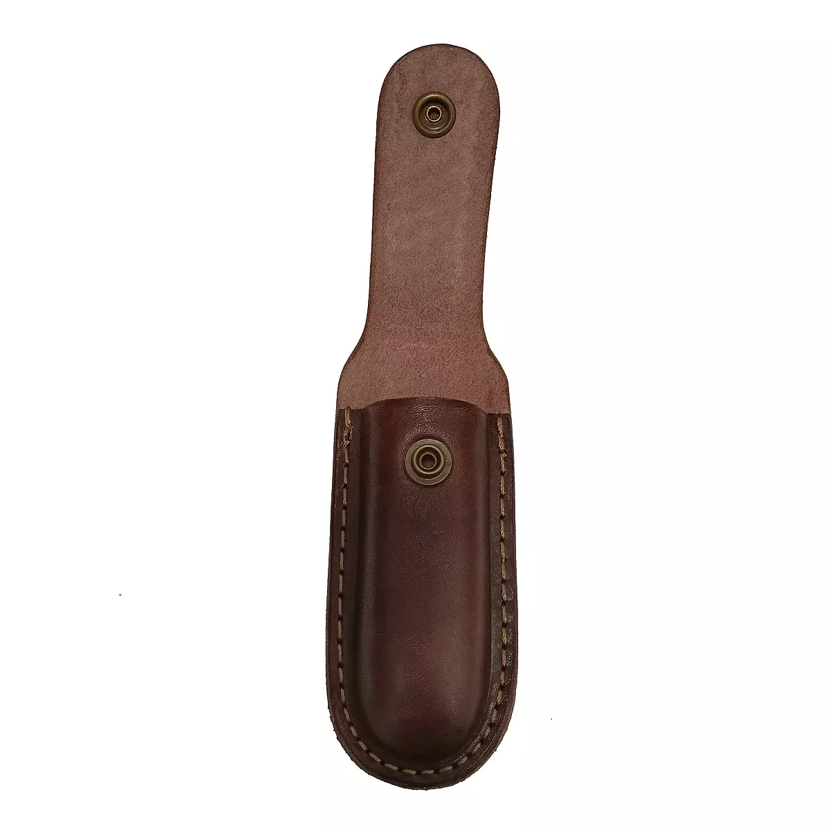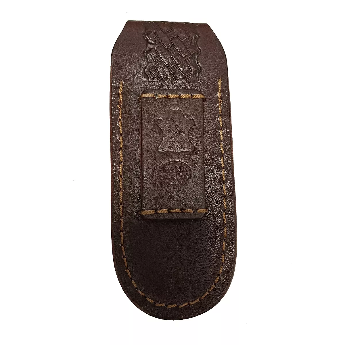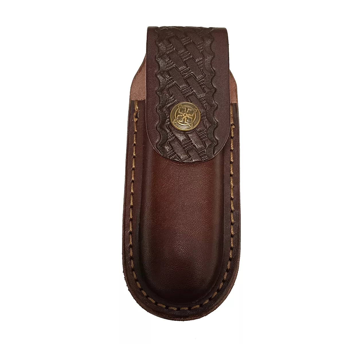 Vysoce kvalitní pouzdro zdobené na zavírací nože délky 13cm. Pouzdro je vyrobeno ručně z hovězí usně.