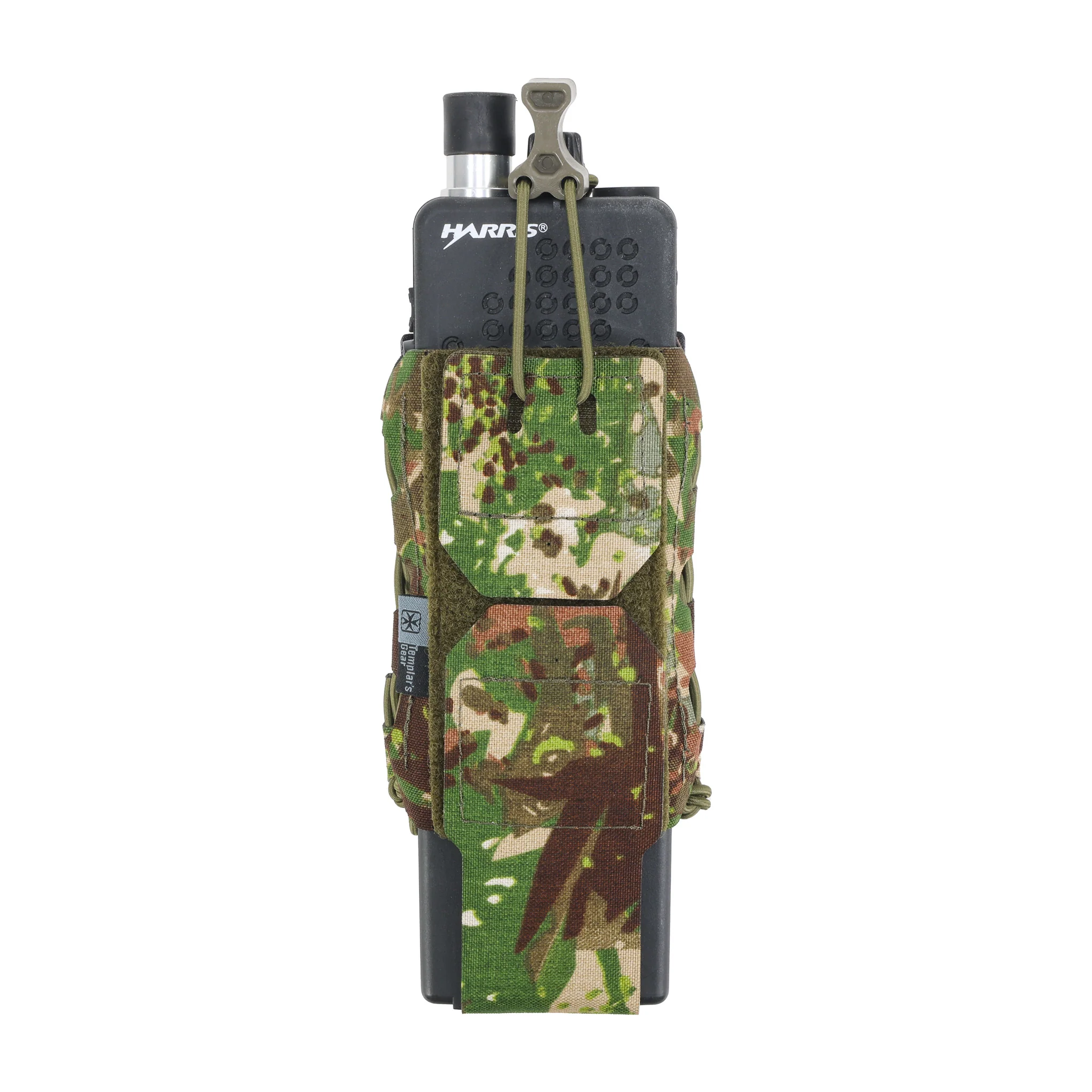 Velká sumka na vysílačku s upevněním MOLLE pro PRC148/152/atd. Konstrukce sumky umožňuje nastavit hloubku a šířku pro uložení různých typů osobních vysílaček se zajištěním v horní části elastickou šňůrou s úchytem. Výrobek je vyroben z odolného laminátu na bázi Cordura 500D s úpravou IRR.