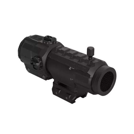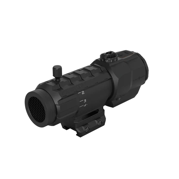 Díky skutečnému 1násobnému zvětšení pro rychlost na krátkou vzdálenost a 4násobnému zvětšení pro přesnost na střední vzdálenost je tato optika připravena na jakoukoli dynamickou střelbu. Puškohled se snadno kombinuje s offsetovými nebo piggyback úchyty pro další využití kolimátorů. Ručně nastavitelné, nízkoprofilové odkryté věžičky umožňují rychlé změny stranového a výškového nastavení bez použití nářadí. Technologie Shake Awake deaktivuje optiku po 10 minutách nečinnosti a okamžitě ji opět aktivuje po zaznamenání pohybu, čímž šetří životnost baterie bez kompromisů v citlivosti.