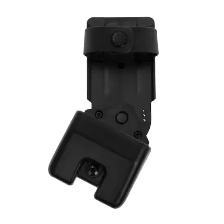Plastová spona UBC-02 umožňuje připevnit celé pouzdro jednou rukou, aniž byste ho museli snímat, na opasky o šířce 25–60 mm nebo na popruhy MOLLE. Tento typ spony zmenšuje vzdálenost mezi opaskem a držákem ve srovnání s montážní sponou UBC-01. Horní část je opatřena zapínacím popruhem, který zabraňuje poškození a vyklouznutí paralyzéru.