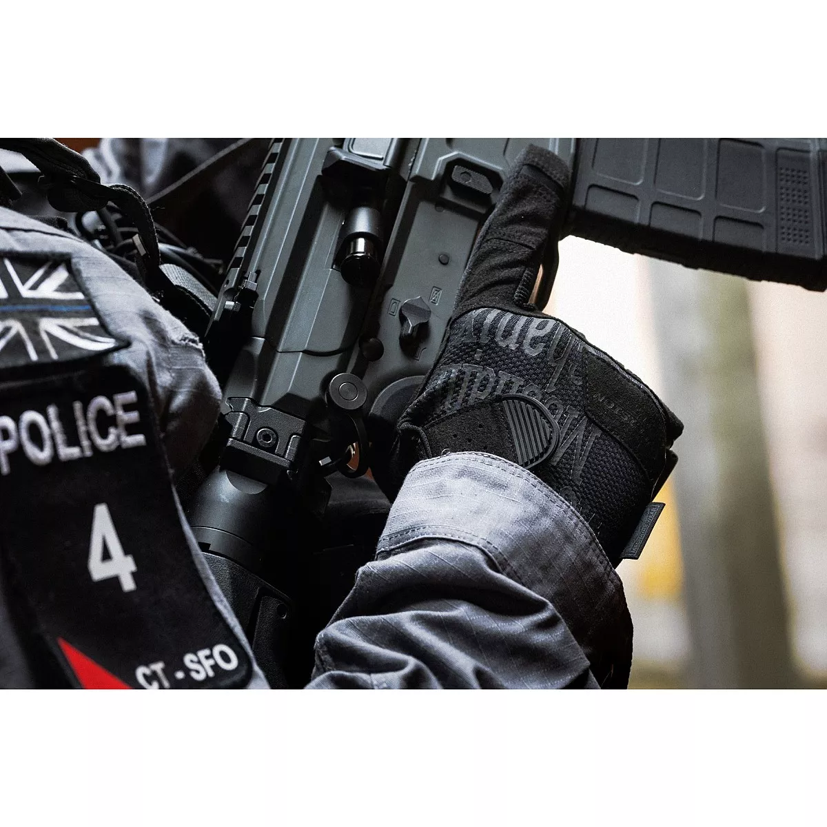 Materiál odvádějící pot na hřbetu palce v kombinaci s plnou dlaní ze syntetické kůže schopnou dotykového ovládání umožňuje nosit rukavice po celý den, což z nich činí dokonalý nástroj pro přesnou manipulaci se zbraní.