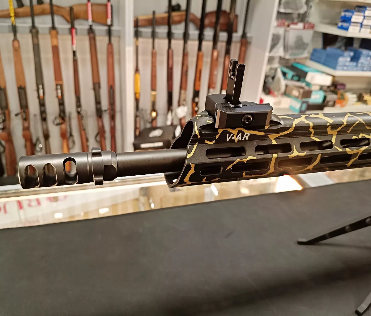 V-AR Ergonomie klasické AR-15 s vlastními vylepšeními.
