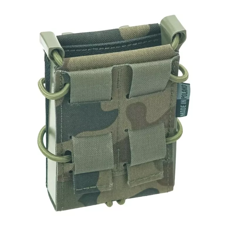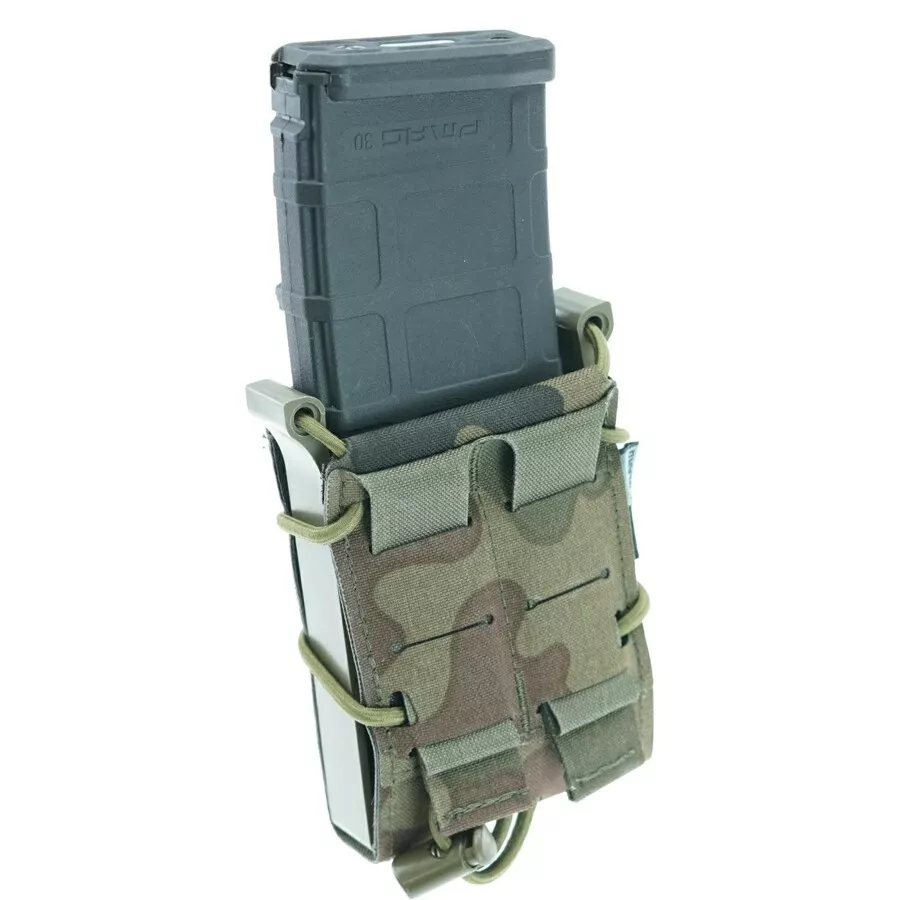 Univerzální samosvorná sumka s laserem řezaným Molle systémem. Tvar sumky udržuje postranní polymerový rám. Díky důmyslnému systému svoru pojme sumka většinu puškových zásobníků včetně zásobníků pro AR, AK i SA58. Pouzdro zajišťuje zásobník samosvorem, takže není potřeba žádná další pojistka, jako krycí chlopeň, nebo zajišťující šňůrka. Laserem řezaná Molle vazba poskytuje nižší profil sumky a elegantní vzhled.