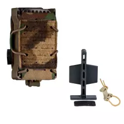 Vyrobeno z ABS plastu vyztuženého skelnými vlákny (vytištěno 3D tiskem) pro odolnost a nízkou hmotnost. Nastavitelné pro širokou škálu pistolových a PM zásobníků v různých výškách.