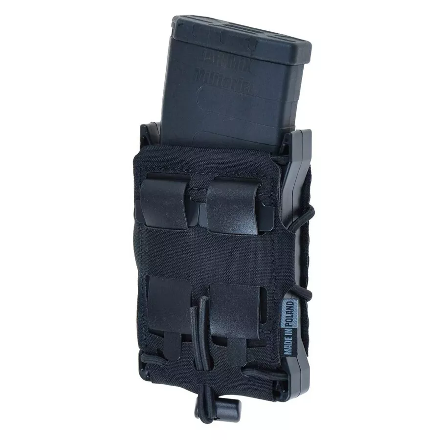 Univerzální samosvorná sumka s laserem řezaným Molle systémem. Tvar sumky udržuje postranní polymerový rám. Díky důmyslnému systému svoru pojme sumka většinu puškových zásobníků včetně zásobníků pro AR, AK i SA58. Pouzdro zajišťuje zásobník samosvorem, takže není potřeba žádná další pojistka, jako krycí chlopeň, nebo zajišťující šňůrka. Laserem řezaná Molle vazba poskytuje nižší profil sumky a elegantní vzhled.