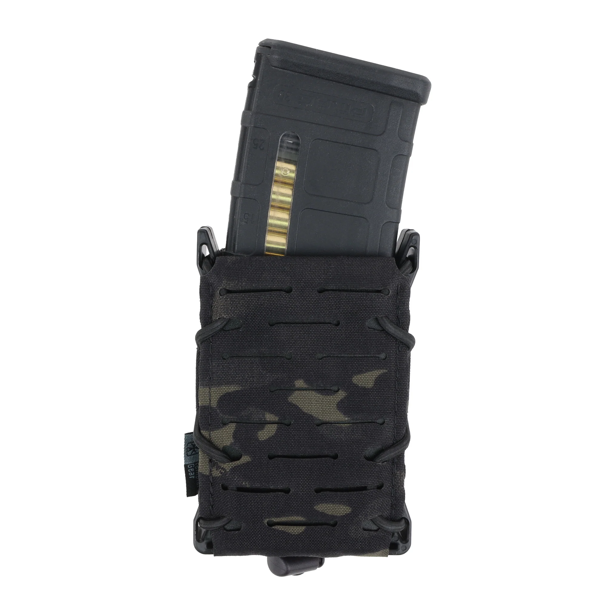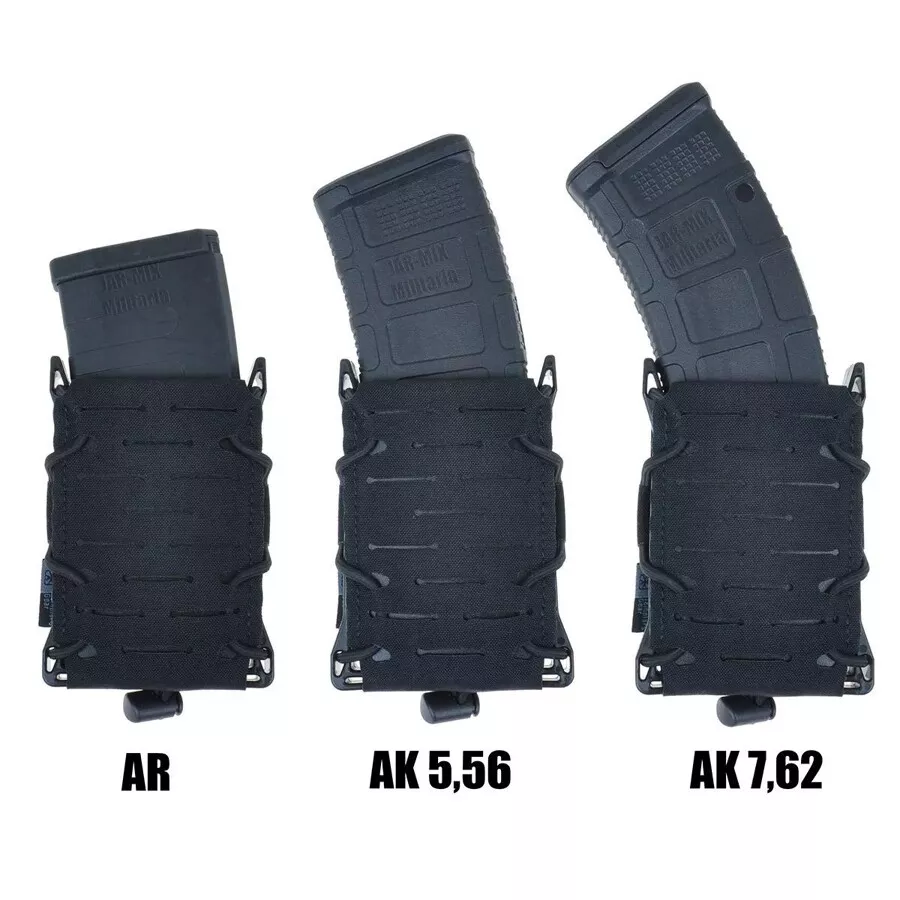 Univerzální samosvorná sumka s laserem řezaným Molle systémem. Tvar sumky udržuje postranní polymerový rám. Díky důmyslnému systému svoru pojme sumka většinu puškových zásobníků včetně zásobníků pro AR, AK i SA58. Pouzdro zajišťuje zásobník samosvorem, takže není potřeba žádná další pojistka, jako krycí chlopeň, nebo zajišťující šňůrka. Laserem řezaná Molle vazba poskytuje nižší profil sumky a elegantní vzhled.