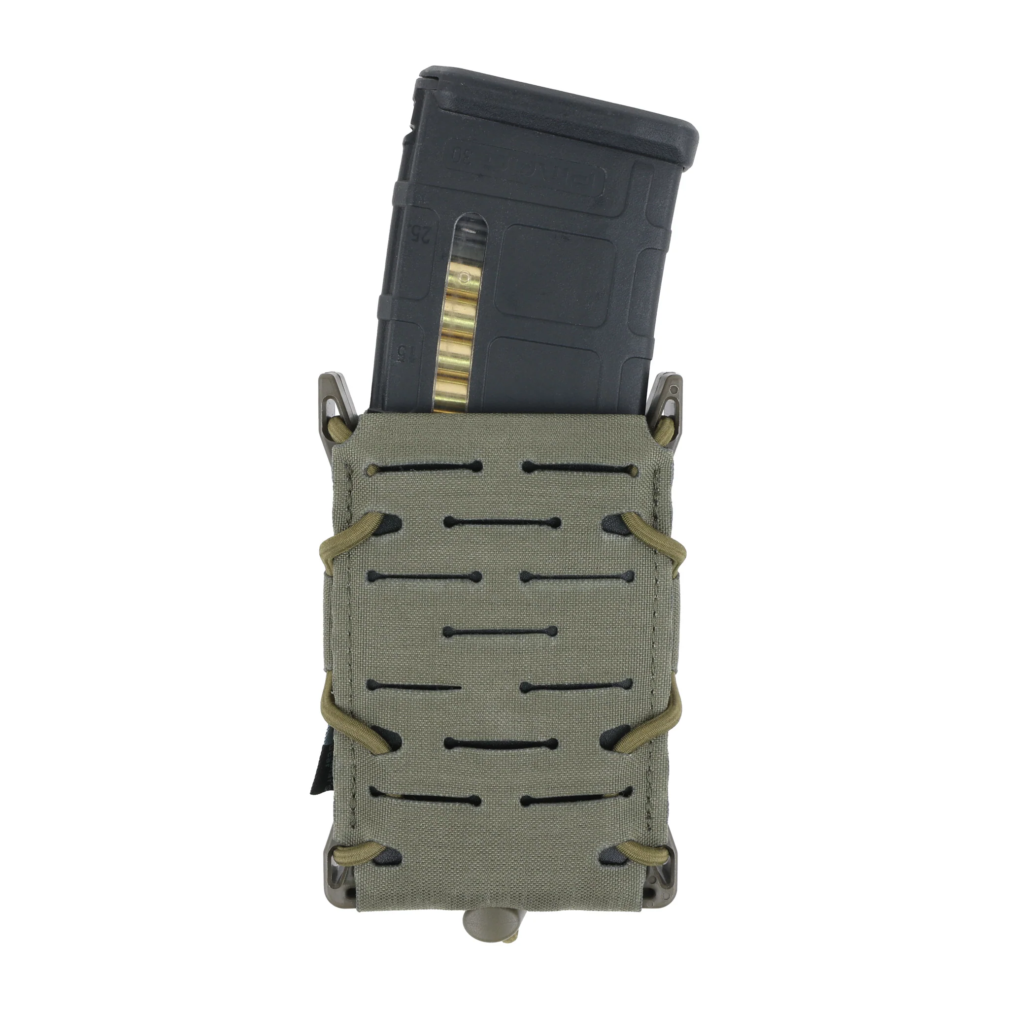 Univerzální samosvorná sumka s laserem řezaným Molle systémem. Tvar sumky udržuje postranní polymerový rám. Díky důmyslnému systému svoru pojme sumka většinu puškových zásobníků včetně zásobníků pro AR, AK i SA58. Pouzdro zajišťuje zásobník samosvorem, takže není potřeba žádná další pojistka, jako krycí chlopeň, nebo zajišťující šňůrka. Laserem řezaná Molle vazba poskytuje nižší profil sumky a elegantní vzhled.