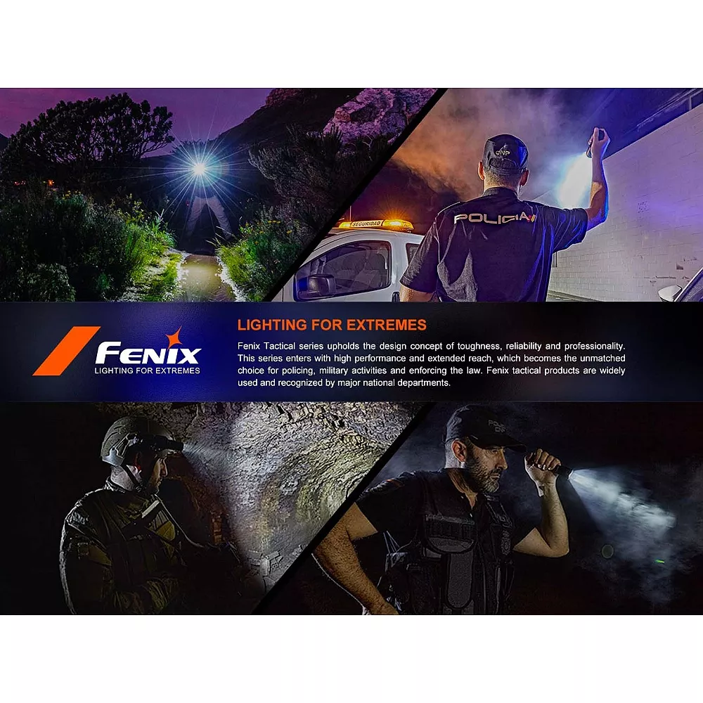- Se svítilnou je kompatibilní i následující příslušenství: montáž na M-LOK ALG-16, rychloupínací montáž na lištu ALG-15, rychloupínací montáž na lištu ALG-00, kovová magnetická montáž na hlaveň, plastová magnetická montáž na hlaveň, montáž svítilny na optiku, kovová montáž na optiku, popruh Fenix ALD-05 pro použití svítilny na přilbě, držák na kolo Fenix, pouzdro ALP-10L, pouzdro ALP-20.