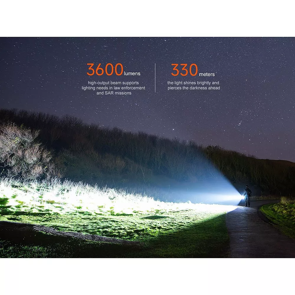 - Jako volitelné příslušenství lze dokoupit: taktický kroužek Fenix ALR-01, kabelový spínač AER-05 a AER-04 (bez stroboskopu, maximální výkon je omezen na 1200 lm), bílý difuzér AOD-M, bílý a červený dopravní kužel AOT-04.