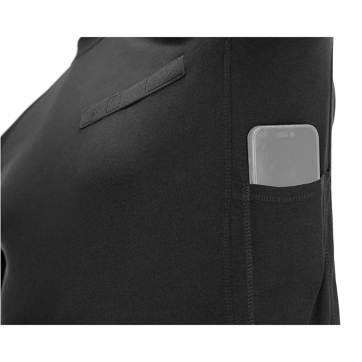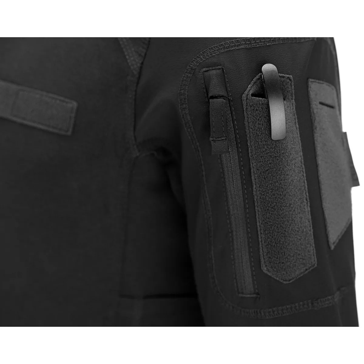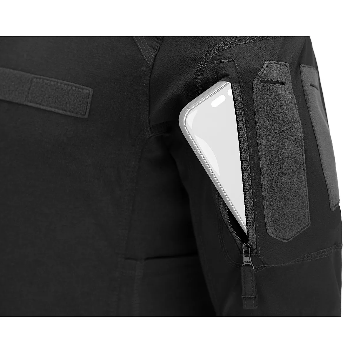 Rukávy jsou vyrobeny z odolné nylonové tkaniny s elastanem, která zvládá kontakt s výstrojí, zbraní i hrubší zacházení. Zároveň si zachovává pružnost, takže neomezuje při manipulaci ani dynamickém pohybu. Kapsy na rukávech se zipem pojmou drobnosti a mají velcro panel pro nášivky. Boční kapsy na smartphone umožňují mít telefon po ruce, aniž by překážel při pohybu. Velcro panel na hrudi pak poslouží pro jmenovku nebo označení.