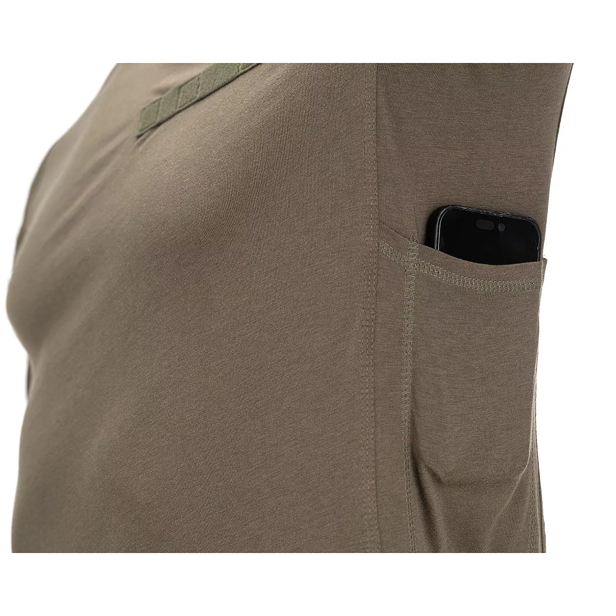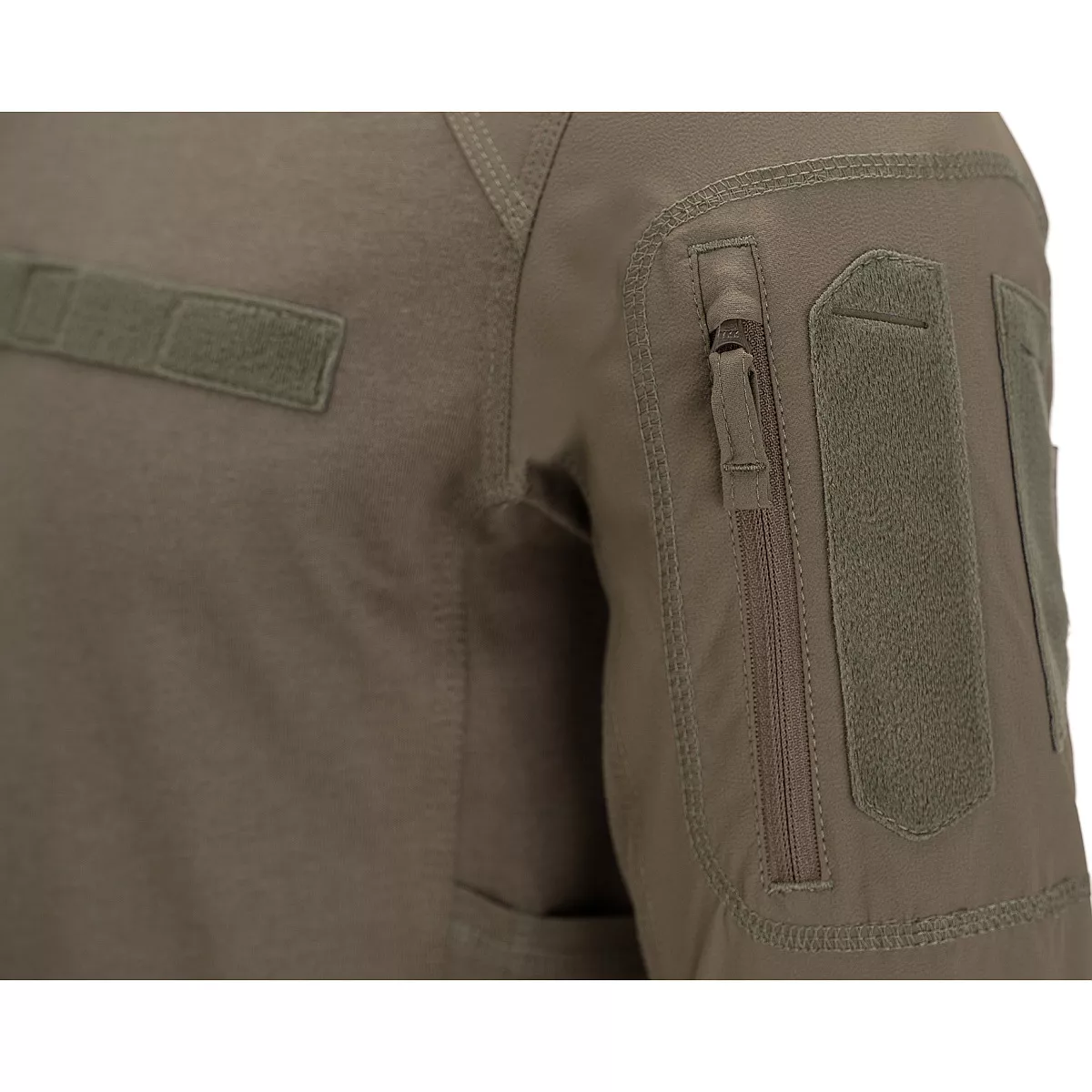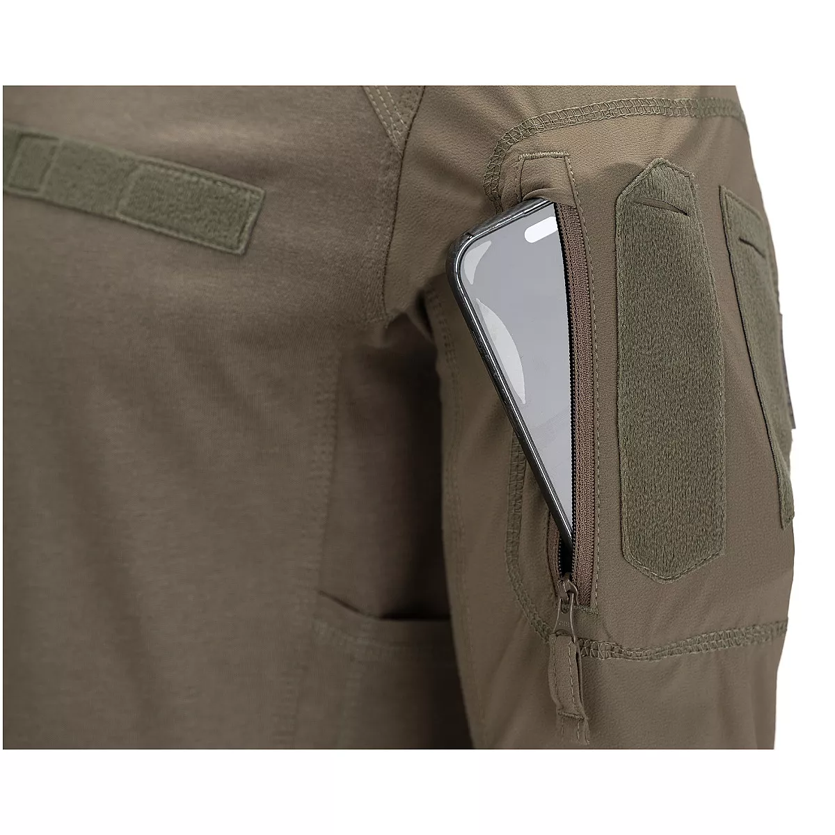 Rukávy jsou vyrobeny z odolné nylonové tkaniny s elastanem, která zvládá kontakt s výstrojí, zbraní i hrubší zacházení. Zároveň si zachovává pružnost, takže neomezuje při manipulaci ani dynamickém pohybu. Kapsy na rukávech se zipem pojmou drobnosti a mají velcro panel pro nášivky. Boční kapsy na smartphone umožňují mít telefon po ruce, aniž by překážel při pohybu. Velcro panel na hrudi pak poslouží pro jmenovku nebo označení.