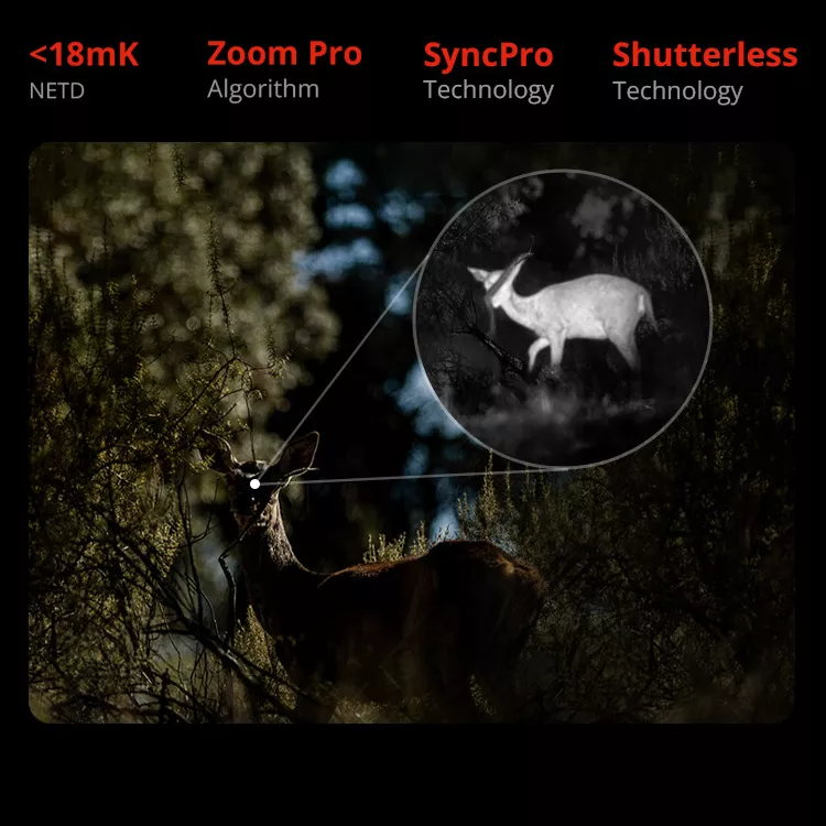Vyzkoušejte bezkonkurenční výkon detekce založený na citlivosti <18mK NETD, algoritmu Zoom Pro společnosti HIKMICRO, technologii SyncPro a bezzávěrkové technologii obsažené v dalekohledu HABROK 4K 2.0, které zajišťují nepřerušované a plynulé vidění. Každá tepelná signatura vystupuje s obdivuhodným kontrastem, dokonce i skrz křoví či listí a bez ohledu na to, jestli se pohybujete v ranní mlze nebo bezměsíčnou nocí. Zvěř lze nyní zahlédnout, identifikovat a sledovat ještě rychleji a z větší vzdálenosti než kdy dříve.