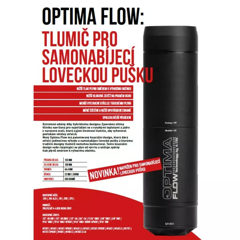 Řada A-TEC Optima nabízí modulární tlumiče navržené pro lovecké a sportovní opakovací i samonabíjecí zbraně. Díky výměnnému přednímu modulu lze jeden tlumič upravit pro více ráží. Modely Optima 60 a Optima 45 jsou určeny pro zbraně bez předních mířidel, Optima Front je určen pro zbraně s předními mířidly a Optima Flow je speciálně optimalizována pro samonabíjecí platformy díky technologii A-FLOW.