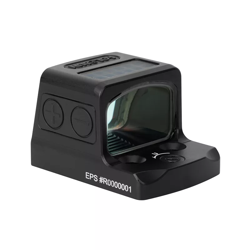 Novinka 2022, HOLOSUN série EPS model EPS MRS RD (červená LED). Představuje velmi robustní, pistolový micro kolimátor s kompaktními rozměry (bude doplněno) a nízkou hmotností 40,5 g. Hlavní myšlenkou série EPS bylo vyvinout uzavřenou a velmi odolnou konstrukci, která na rozdíl od modelu HE509T nebude závislá na proprietární montáží HOLOSUN (dostupné montážní destičky pro CZ P-10 OR a GLOCK MOS). Poslední a zároveň velmi důležitým parametrem je výška základy, která je vůbec nejnižší ze všech pistolových kolimátorů HOLOSUN. Střelec tak může bez problémů využít pro střelbu pevná mířidla.