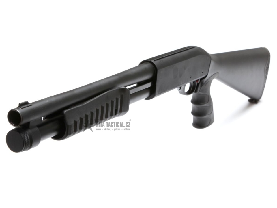 - Polymerová pažba s pryžovou botkou a pistolovou rukojetí